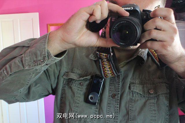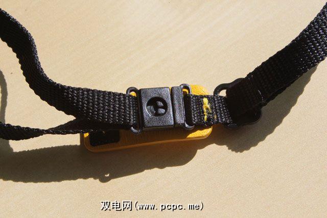 提供了一个可调节的表带,可以挂在脖子上,塑料表扣太弱了–相机上的轻微拉力将其打开。看来他们试图用表扣上的人造皮革标签解决这一问题,表扣的一端有一些魔术贴,理论上应该贴在表带上。