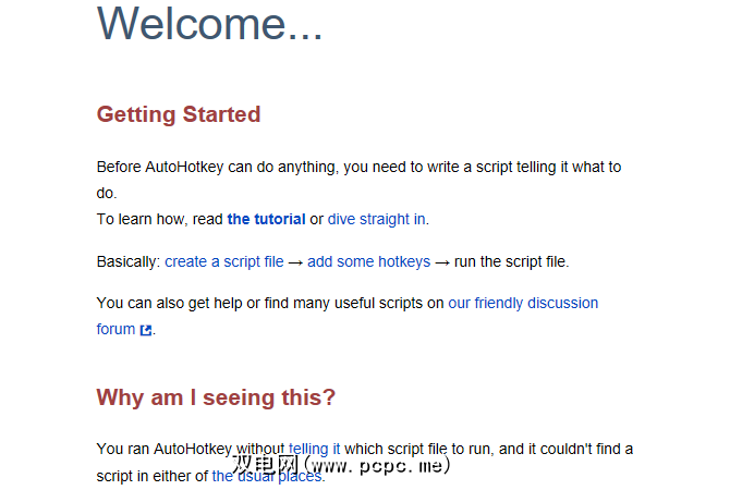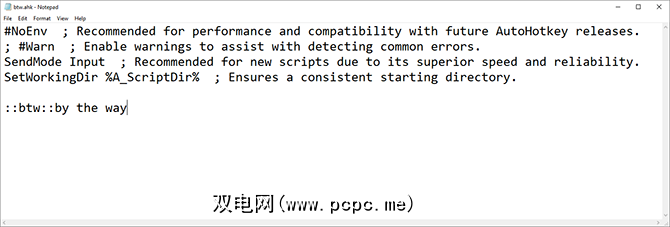 安装后,在开始中找到AutoHotkey >菜单并打开它。您将看到帮助文档,该文档已由AutoHotkey代替传统的GUI。使用AutoHotkey的最简单方法是使用其他人已经制作的脚本。每次您键入该脚本时,它都会将“ btw"转换成“顺便说一句"。