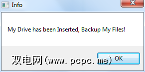 该脚本将识别“设备变化",以及一个USB记忆棒,将推出一个消息框,