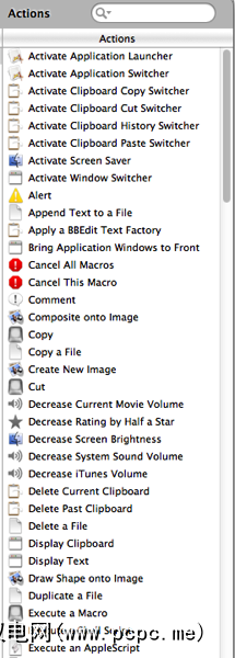 使用KM的关键是打开并浏览其数百个动作列表,以查看哪些动作符合您的需求。请注意,它包括复制和粘贴文本,启动其内置应用程序切换器,显示文本,隐藏特定应用程序,播放特定iTunes曲目或播放列表,搜索特定网站,按下按钮等操作。