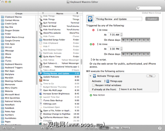 对于Mac Mac而言,Keyboard Maestro的价格适中,以我的经验非常可靠。 Keyboard Maestro与Automator相似,您可以在其中设置宏以执行手动执行的任务和步骤。例如,您执行的几乎所有步骤-启动,隐藏或退出应用程序;打开文件夹和文件;下载网页;输入复制的文本;为iTunes歌曲评分;给家人发电子邮件;复制或粘贴URL –可以通过Keyboard Maestro更快地完成。