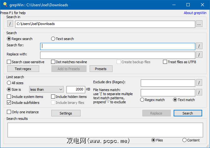 您不得不在处理GUI选项时失去一些灵活性,但并没有太多。我发现总体上更容易处理,结果更易于浏览。请注意,grepWin仅在Windows Vista和更高版本上有效。
