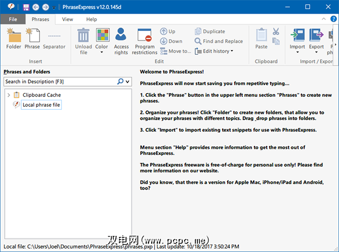 PhraseExpress从专业版的30天试用版开始,然后转变为免费版。这两个版本是相同的,唯一的例外是免费版本只能用于不涉及客户端-服务器环境的非收入活动。