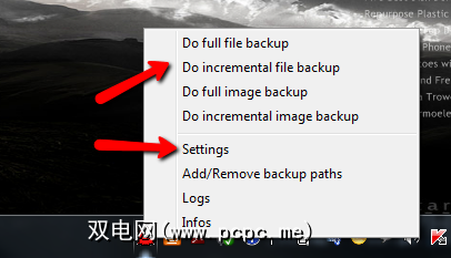 在客户端计算机上,您可以通过右键单击任务栏中的UrBackups图标来触发手动备份,也可以打开客户端软件来定义该客户端自动备份的时间表。