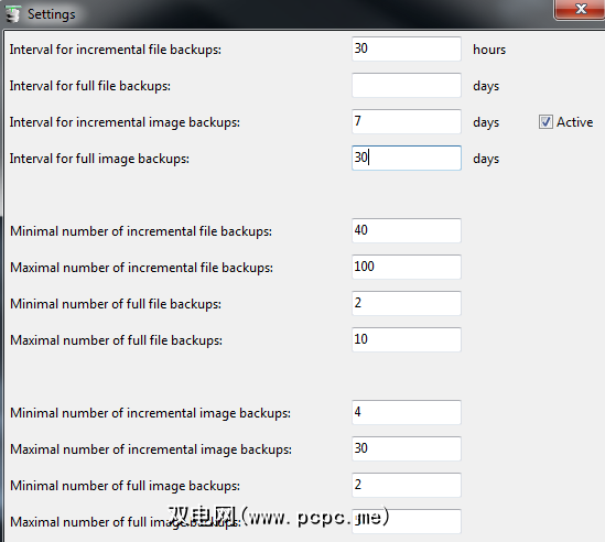 您只能安排文件和特定文件夹的备份,或者,如果您愿意,可以定义增量映像备份的间隔。确保选中“活动"框,否则将使用服务器计划设置。