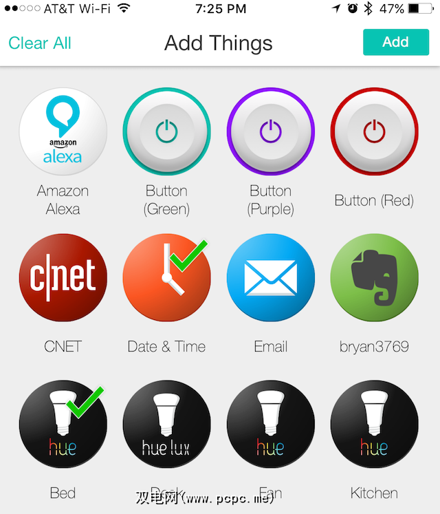 数字事物可以包括Evernote,Twitter,Instagram等。您还可以创建使用电话的通知系统,位置和电子邮件的流程。