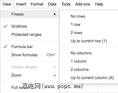 如果您有大量数据保存在Google电子表格中,它有助于冻结第一行和第一列。