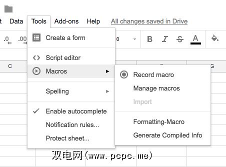标签: Google云端硬盘 Google表格 宏 生产率窍门