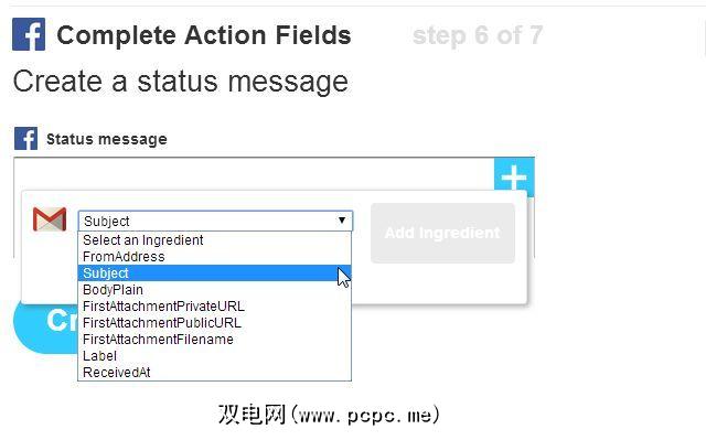 最酷的是,您不仅可以在“按主题过滤输入的电子邮件,但是您可以使用IFTTT将电子邮件的整个主题行发布到Facebook!在IFTTT Facebook触发器中,就像选择传入主题作为发布要素一样简单。