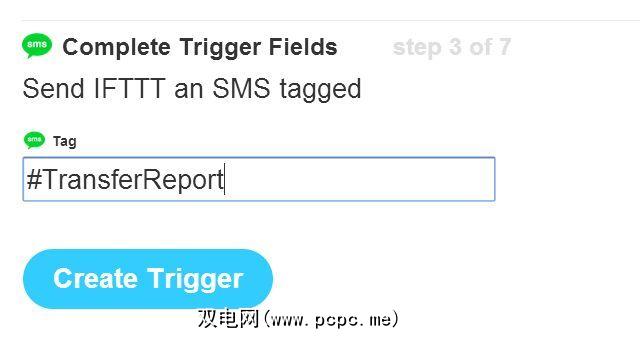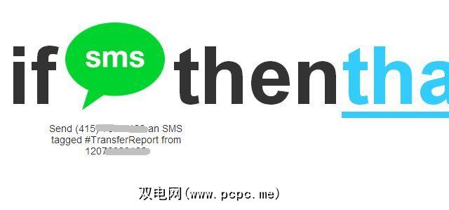 因为您已经设置了IFTTT SMS触发以查找#TransferReport标签,此短信将触发该配方。