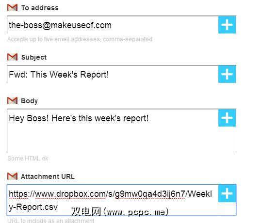 最后,对于触发器,您也要使用电子邮件-让IFTTT发送带有固定主题和正文的电子邮件,但将附件固定为URL