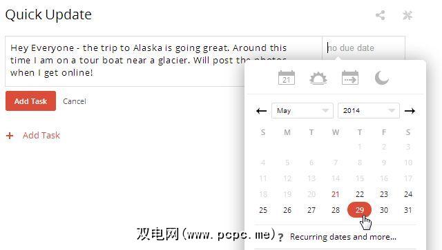 为什么不在ToDoist中安排一系列Facebook Post任务?这简单。首先,在ToDoist中为所有Facebook帖子设置一个名为“快速更新"的新项目。然后,只需设置一个任务,然后将标题设为帖子文本即可。