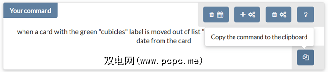 对命令感到满意后,请单击按钮将其复制到剪贴板。然后,跳回到Trello,然后在适用于该板的Butler列表中单击添加卡。将命令粘贴到卡中就可以完成操作。