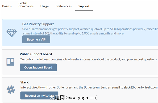 要开始使用Butler for Trello,要开始您的Butler for Trello体验,请访问网站并选择您的配套。您可以免费试用,每周最多进行 250次操作。然后,查看条款和条件,通过登录来链接Trello帐户,然后选择您的首选项。