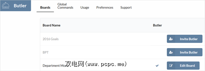 一旦链接了Trello帐户,您将看到Butler仪表板。确保您位于董事会标签上,然后选择您希望Butler访问的网站。您可以选择任意数量的板。