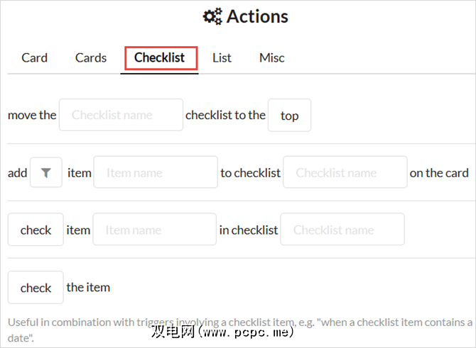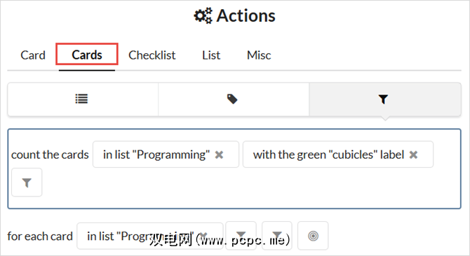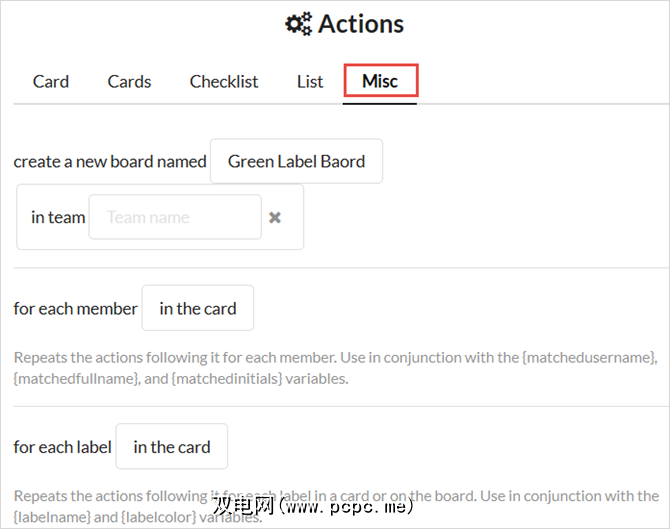 “其他"区域包含各种操作根本不适合其他部分。大多数是重复动作,并基于另一个动作。例如,您可以使用标签名称和标签颜色变量对卡或板上的每个标签进行重复操作。