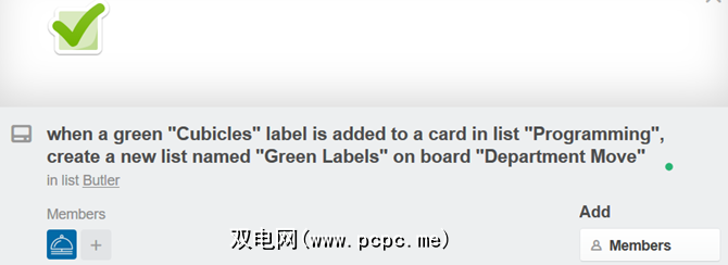 在所需板的Butler列表中单击添加卡,然后输入触发和操作。在您熟悉命令的编写方式之后,这可能是一种更简单的方法。