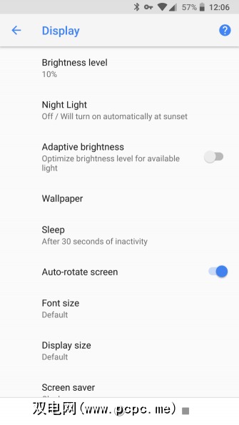 Android的自动亮度并不理想,但是它会使您对亮度不那么满意。要启用它,请转到设置>显示并启用自适应亮度。