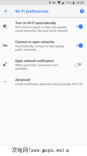如果启用自动开启Wi-Fi ,Wi-Fi将当您在家庭网络附近时,可以重新启用自身。启用连接到开放网络以自动加入“高质量"公共网络。
