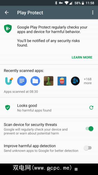 Google Play保护是一项相对较新的功能,可扫描您的应用和手机中是否存在有害内容。您可以随时运行扫描,但是确保已启用自动扫描是明智的。
