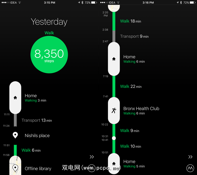 移动应用程序会自动执行所有这些操作。它在iOS和Android上均可用。它在后台运行,并使用GPS跟踪您的运动。然后,使用其算法将一天中的某些时段标记为步行,骑自行车或乘车。而且大多数情况下它都是正确的(如果不正确,您可以进入并编辑细节)。