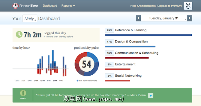 对于那些在计算机领域工作突出的人来说在Mac或Windows计算机上,RescueTime会处理这些问题。安装该应用程序,它将跟踪您如何在计算机上花费时间。它将自动按类别对活动进行分类,并告诉您花费在生产上的时间有多长时间。