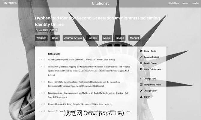 Citationsy是用于创建引文,参考文献列表和书目的新的干净工具。当CiteThisForMe购买流行的RefMe时,开发人员将其构建为替代方案。想法是将后者的简便性与更多的自动参考管理功能结合在一起。使用这个功能强大的免费工具可以创建9000多种样式的书目- APA,哈佛,DIN,芝加哥等。