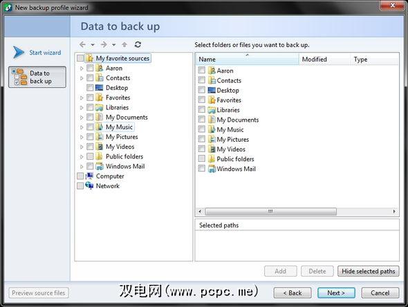 首先,通过单击< em>备份配置文件链接。然后,系统会提示您选择要备份的数据。请记住,如果您打算使用Google云端硬盘,则总共只有5GB。我建议选择您的我的文档文件夹。但是,如果您的文件夹像我的文件夹一样,则可能其中还有许多其他不需要的程序文件,因此请遍历它并选择您不想要的子文件夹。