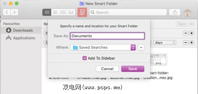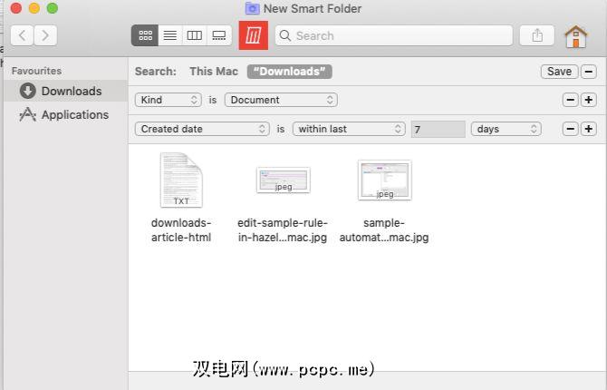 智能文件夹根本不是文件夹,确切地说,它们是保存的搜索,但是您可以这样使用它们。使用此功能,您不必过滤 Downloads 文件夹中的文件,而是可以对其进行过滤以查看您感兴趣的特定子集。