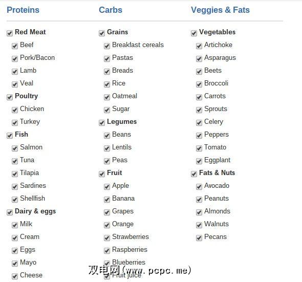 食物和食谱过滤器仅允许您包括或排除某些食物组和配料。因此,您可以排除所有乳制品,或仅包括您真正喜欢吃的蔬菜。