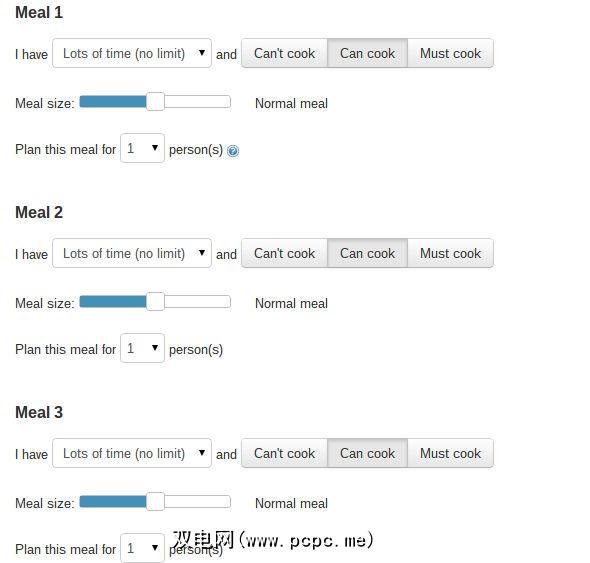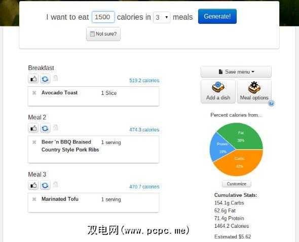膳食生成器是Eat This Much的主要关注点。它以最简单的形式要求您指出一天中要摄入多少顿饭,以及这些顿饭应摄入多少卡路里。然后它将为您提供早餐和一日两餐,它们之间应该满足您的基本要求。