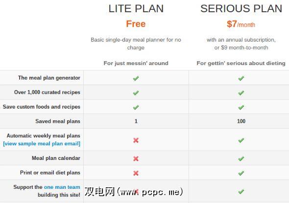 从上面的屏幕截图中可以看出,高级帐户可以提供更多的节食计划,并每周增加一次膳食计划,膳食计划日历和剩余的膳食计划等。
