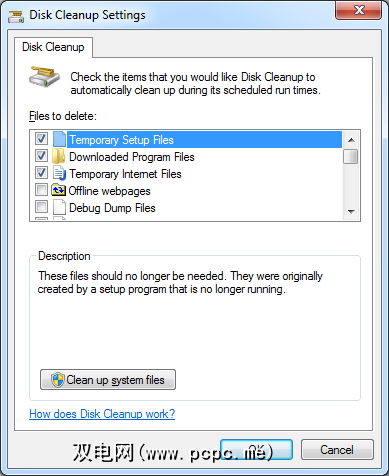 您可以通过>>开始>所有程序>附件>系统工具>< em>磁盘清理。但是,您也可以安排自动磁盘清理,这就是我将在本文中向您介绍的过程。