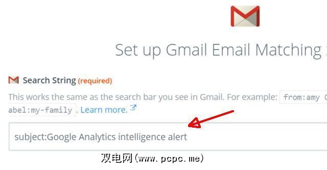 首先,您需要使用“搜索字符串"来设置Gmail触发器,并将该字符串定义为可以识别传入电子邮件的任何内容。在我的情况下,该主题行为“ Google Analytics(分析)智能警报"。
