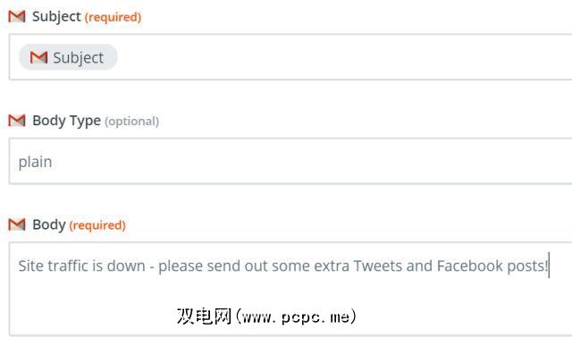 在下面的示例中,我将向您展示我打算如何使用传入的Google Analytics(分析)智能警报电子邮件,通知我我的网站访问量正在低,完成以下所有任务: