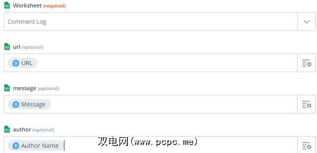 创建一个新的ToDoist任务来提醒您就可以了。回应评论。但是现在,您将要记录所有评论,以便您可以在一个中心位置查看所有评论,包括URL链接。因此,下一步将是添加带有评论URL,作者姓名和消息的Google Spreadsheet Zap。