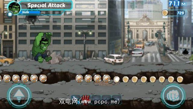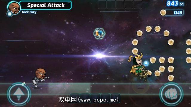 有两个按钮:您的左手拇指需要点击Jump来避免跳动,而右手拇指则需要点击“粉碎"按钮执行攻击并清除坏人。偶尔,您会通过在屏幕上滑动来填补特殊攻击条,以造成更多伤害。