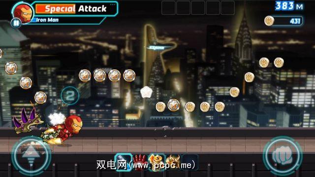 您可以利用游戏中的各种力量,例如史塔克的财富来增加硬币。您收集或消耗了Mjolnir的力量来摧毁屏幕上的所有障碍物并将它们变成硬币。这些派上用场,以消除游戏中的外星敌人。您可以从商店购买黄金(一种游戏货币,占您收集的所有硬币的10%),也可以通过应用内购买购买更多黄金。