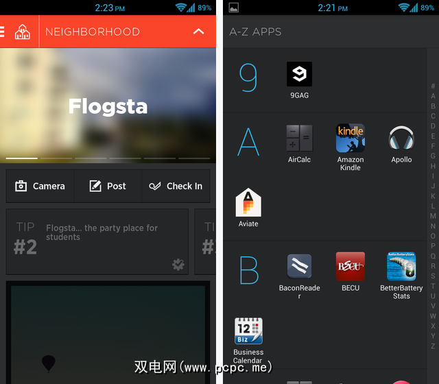 向右再滑动一次,您实际上已按字母顺序到达了应用程序抽屉。我唯一的抱怨是,任何类别的应用程序的第二行都以字母开头,而不是第一个应用程序所在的位置。例如,在我的A部分中,我认为Aviate应该属于AirCalc,而不是A。也许只是我一个人,但是我认为这将使滚动整个列表的工作在眼睛上更加容易。您也可以抓住最右边的小条,快速浏览字母。