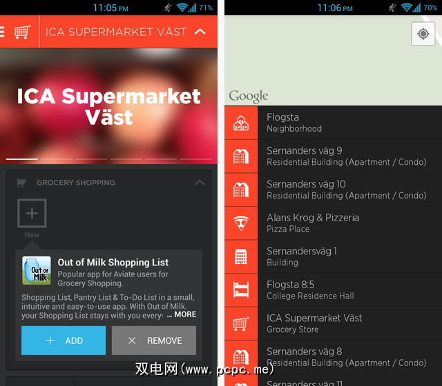 Aviate将自动显示-根据该位置为我选择一些应用。当我在超级市场ICA时,它会自动更改主屏幕以适应这种情况。当我向下滑动时,现在有一个放置杂货店应用程序的地方-如果有的话。但是,正如我稍后会解释的那样,Aviate确实建议我下载一些杂货应用程序。