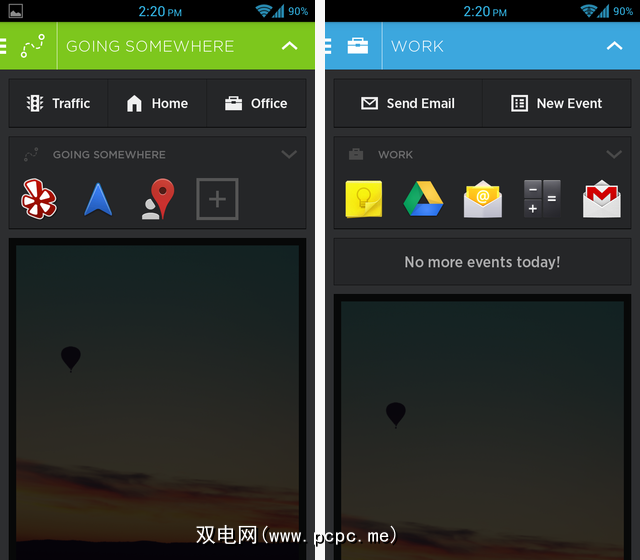 此启动器看起来像是Google设计的,具有许多滑动和样式功能,让人联想到Google即时贴。但其杀手级功能是,它会根据时间和您的位置在一整天内发生变化。从理论上讲,它应该进行更改以更好地满足您的需求。我对此能否做到持怀疑态度,但Aviate的表现很好。