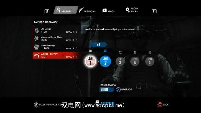 绿色凝胶是作为杀死敌人的奖励而获得的,或者可以在各种缝隙中找到。医院的椅子可以增强您的能力,例如最大程度的健康,冲刺时间,弹药容量或各种武器升级(例如更短的装弹时间)。这样可以增强“选择风格"的游戏玩法,因此,如果您一直在战斗,则可能需要升级可信赖的手枪,而更害怕的人则倾向于冲刺的时间和健康状况。