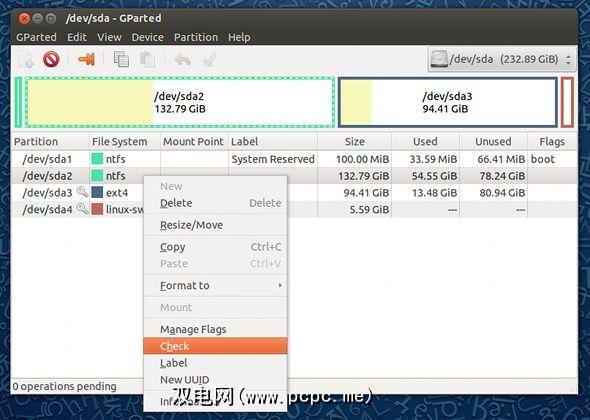 如果您熟悉 GParted ,您还可以使用它在文件系统上运行检查,以确保它们也没有任何问题。这些检查还可以帮助解决由物理硬盘驱动器问题引起的问题,主要是通过将受影响的块标记为不可用来解决。这样,如果硬盘驱动器上唯一的问题是几个坏扇区,则可以让文件系统知道该问题,这样就不会试图使用这些坏扇区。