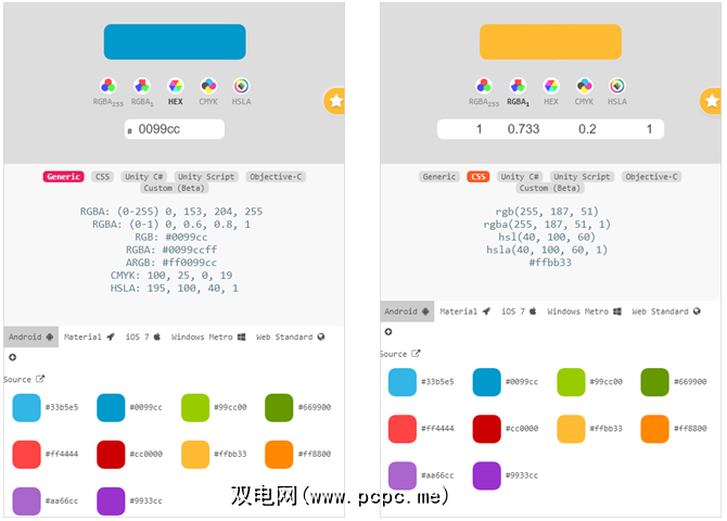 虽然该应用程序被称为“开发人员的颜色",但实际上对使用颜色的任何人都非常有用。您可以转换RGB,HSL,Hex和CMYK的颜色。另外,您可以将RGB(255)转换为RGB(1)。