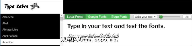 单击左侧的字体样式以在主窗口中更改文本。您只需单击一下即可签出本地,Google或Edge字体。当您寻找完美的字体组合时,Type Zebra会帮助您找到它。