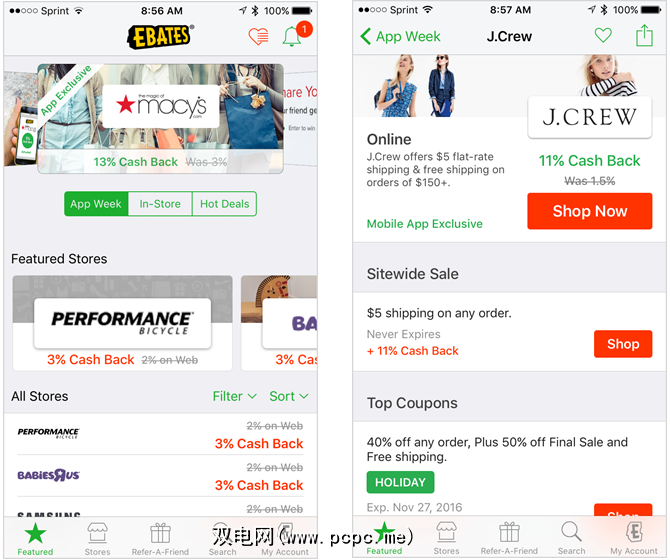 如果您只想购物就可以获得奖励和现金返还,那么Ebates非常适合您。这个聪明的小钱节约者会为您提供超值优惠和购物奖励。浏览成千上万的商店,例如American Eagle,Famous Footwear和Macy's。您还可以按类别购买电子产品,服装和玩具。