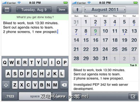 iDoneThis没有麻烦。这是一个简单的基于文本的应用程序,可用于所需的任何类型的日记或笔记。您甚至可以将条目添加到将来的日期。