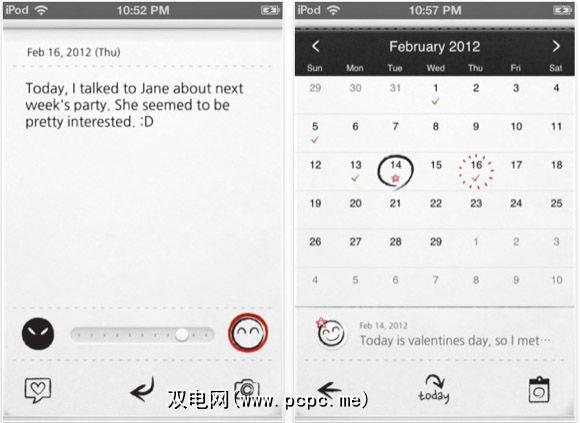 您还可以使用密码保护您的日记条目,添加将照片添加到记事中,将其标记为收藏夹,然后贴上贴纸。还有一个“情绪"滑块可指示您在特定日期的感觉。