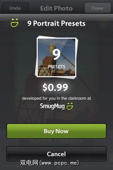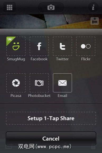 开发了Camera Awesome的照片共享和打印站点SmugMug希望您将照片存储在其站点上,但它也允许您共享到FaceBook ,Flickr,Twitter,Picasa,Photobucket以及通过电子邮件发送。该应用程序还包括一个预设的一键式预设,可将照片直接发送到指定站点。