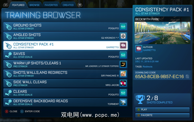 有更多可用的自定义培训模块。您可以在自定义培训屏幕上输入代码以访问它们。控制台玩家也可以享受这些乐趣,因为这些训练模块可用于PC,Xbox One和PlayStation4。RLCustomTrainingsubreddit是入门的好地方。